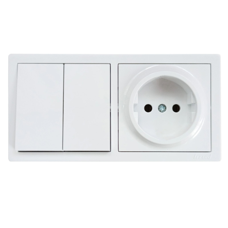Выключатель 2-й+Розетка 1-на б/з белый 752-0200-170BVP LETO Lezard