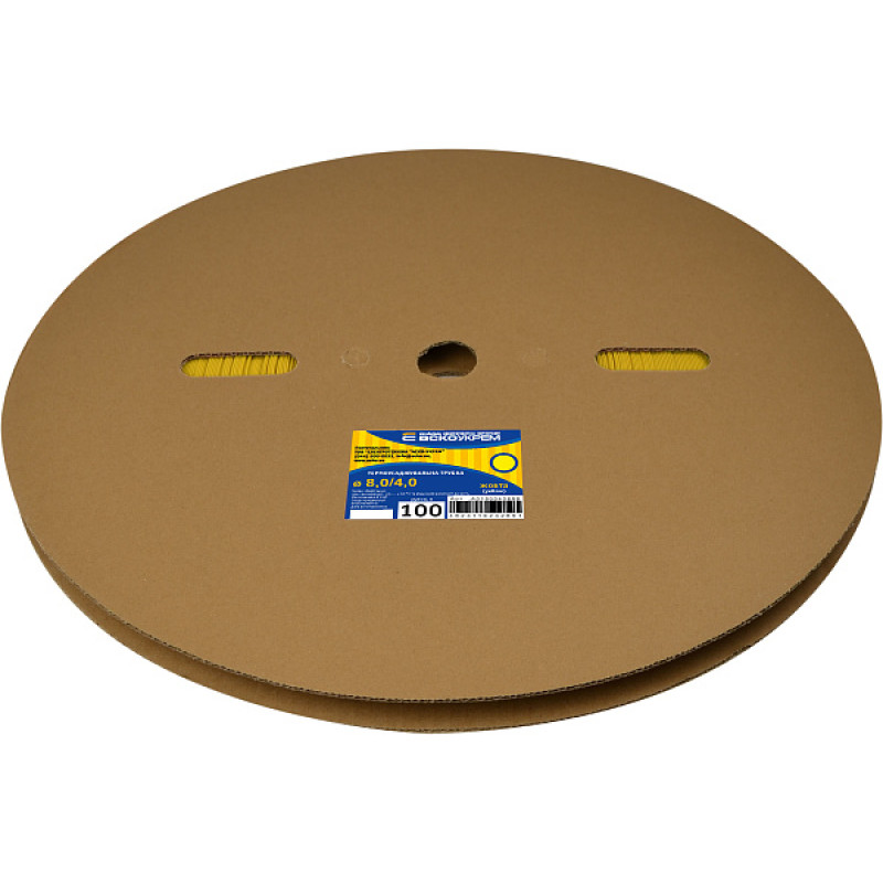 Термоусадочная трубка 8,0/4,0 (рулон 100м) желтая АСКО A0150040689