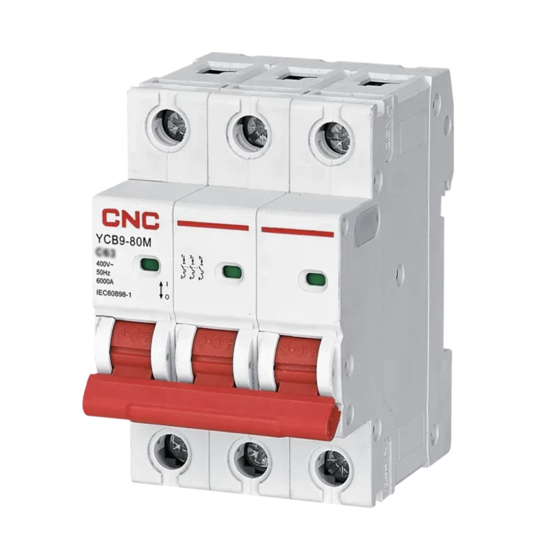 Модульный автоматический выключатель YCB9-80M 3Р 6КА тип С 63А, CNC (Б00037915)