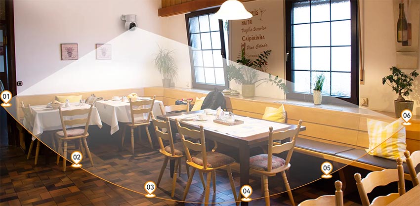 - Панорамирование и наклон:Возможность панорамирования на 355° и наклона на 90° для полного охвата пространства.