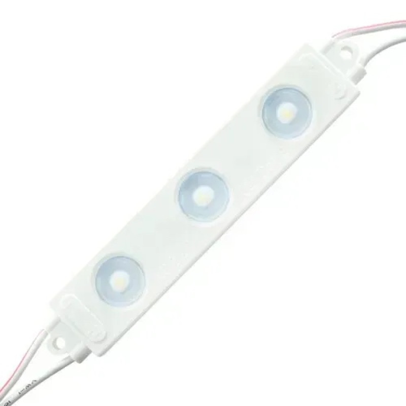 Этот светодиодный модуль может работать при напряжении в диапазоне 176-265 В с энергопотреблением в 1,5 Вт. Он состоит из трех диодов типа SMD2835 и распространяет лучи под углом в 140°. Изделие излучает слегка синеватый холодный свет с цветовой температурой 6500 К. Световая отдача модели составляет 45 лм/Вт при световом потоке в 70 лм. Модуль имеет эксплуатационный ресурс в 35 000 часов и соответствует классу пылевлагозащищенности IP65.