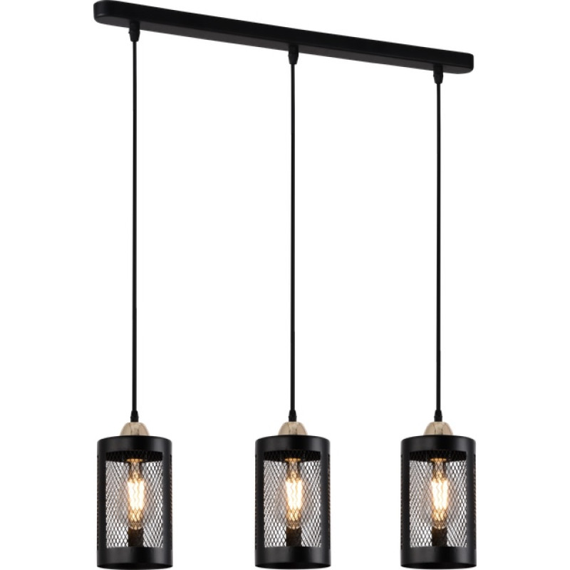 Благодаря трем источникам света с цоколем E27 и максимальной мощностью до 60 Вт, такую люстру можно оборудовать как традиционными лампами накаливания, так и энергоэффективными открытой сетчатой конструкции. Металлическая сетка плафонов не просто выполняет декоративную функцию — она создает эффектную игру света и теней в помещении, придавая интерьеру глубины и атмосферы. Параллельно позолоченные детали придают теплый оттенок и подчеркивают изящество конструкции. Такой светильник может стать центральной композиционной точкой просторной кухни, столовой, коридора или зоны отдыха, подчеркнув современный дизайн, смешанный с индустриальной эстетикой. Несмотря на свою выразительность, она остается достаточно сдержанной благодаря четкому геометрическому силуэту и гармоничному сочетанию черного и золотых тонов. планку.