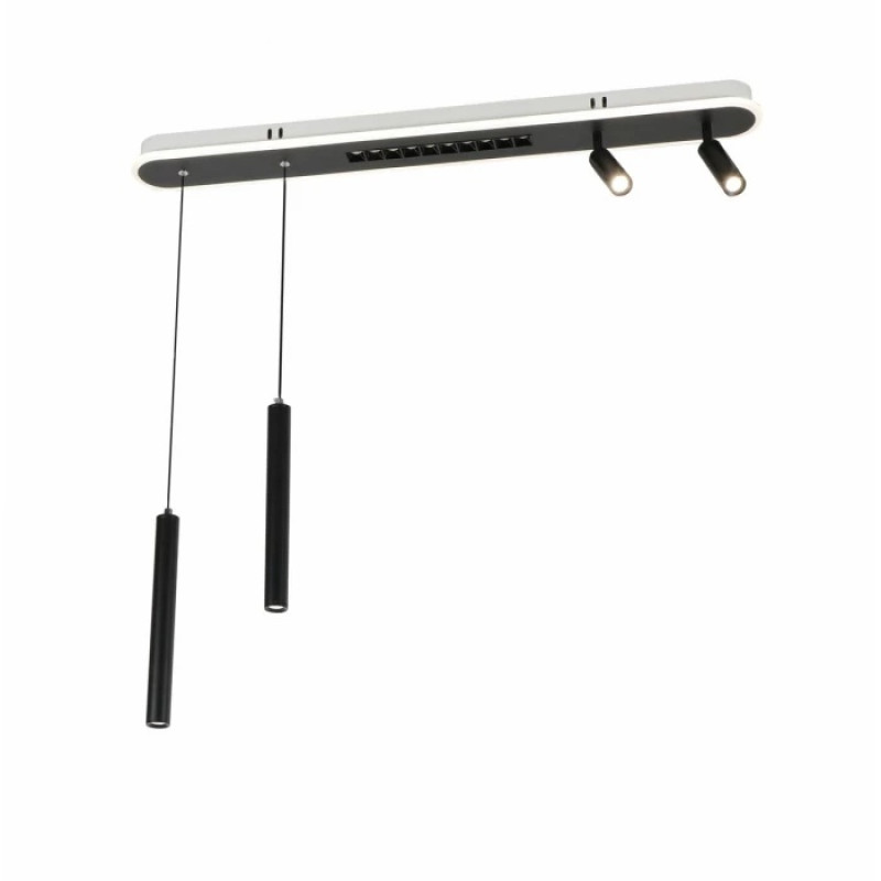 Светильник состоит из основной части на 66W и двух направленных спотов по 20W, что обеспечивает как общее, так и акцентное освещение. Это позволяет выделить определенные зоны в помещении или осветить конкретные элементы интерьера.
