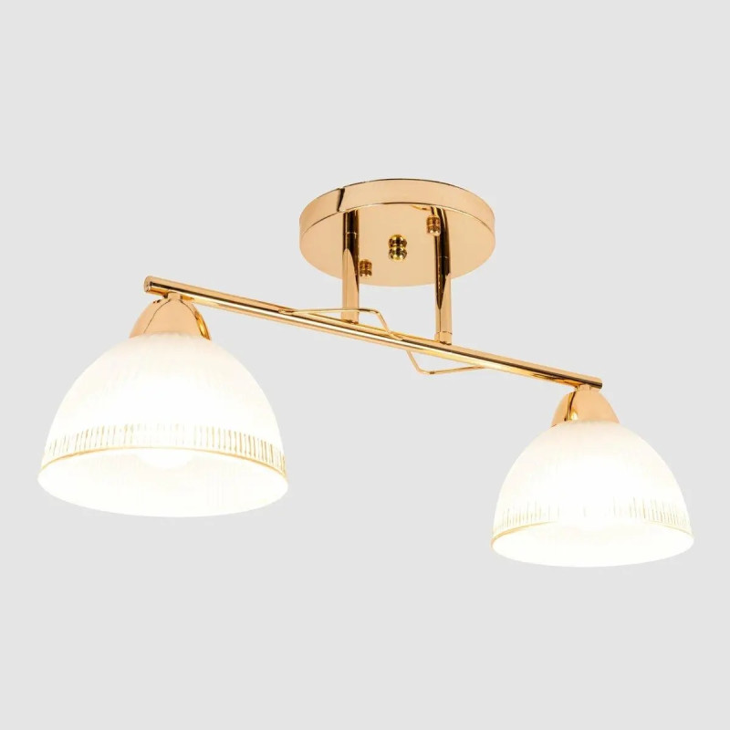 Люстра Sirius Л 8053/2 – это элегантный осветительный прибор с двумя плафонами, который придает вашему помещению стильный вид. Каркас люстры изготовлен из металла в золотом цвете, что придает ему роскошный и изящный вид.