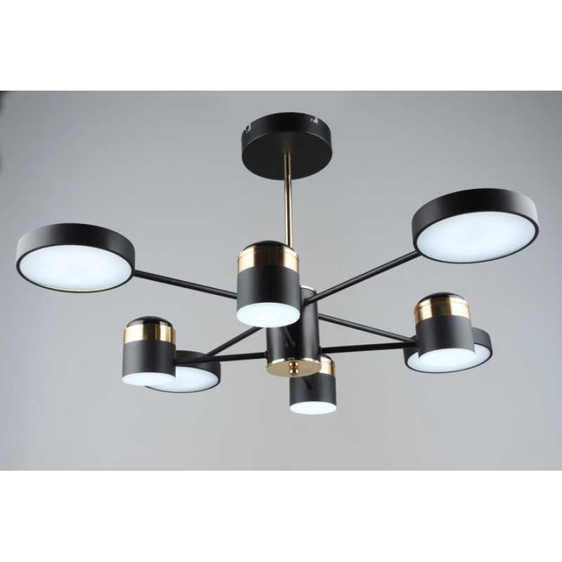 Каркас изготовлен из крепкого металла черного и золотого цвета, что создает стильный контраст и делает люстру центральным элементом интерьера. Восемь акриловых плафонов обеспечивают равномерный, мягкий свет, наполняющий комнату уютом.