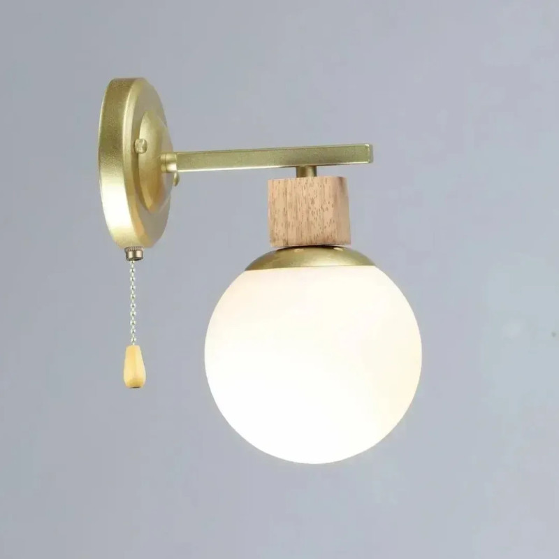 Настенная бра Valeso с деревянным декором под лампу Е27 золотая IP20 B NQ6625/1W