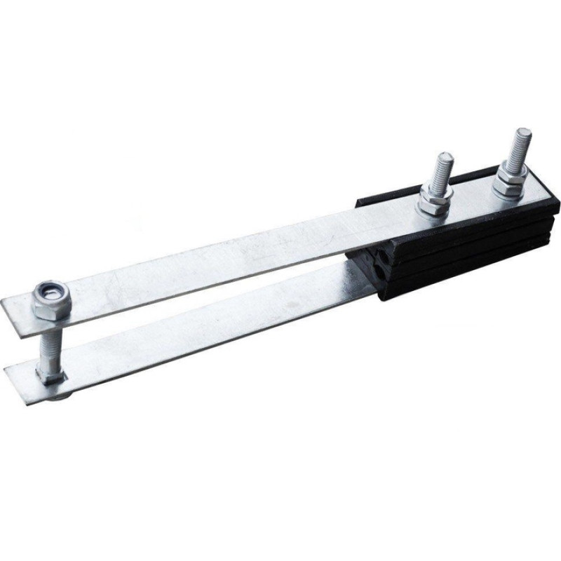 Используется для анкерного крепления четырехжильного в воздушных линиях электропередач (конечных или угловых) или на промежуточных опорах (закрепление в закрытых кольцах крюков). Сечение провода составляет 25-50 мм. Для этого применяют кронштейны, бандажные крюки или подобные специальные постройки. Данный Зажим используют также для закрепления проводов на разных магистралях и его разветвлениях. Данный анкерный зажим обеспечивает необходимое тяготение в пролетах электролинии. Можно применять с разными типами изоляции СИП.