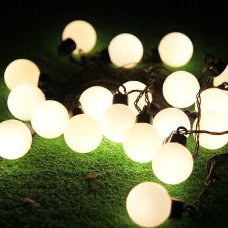 Уличная гирлянда Velmax V-SSL-B-WH линейный шар 10LED белый IP65 черный кабель 10м - линейный вид гирлянды. Изделие состоит из: светодиодных ламп на проводе, штекера, преобразующего блока (из стандартной сети 220В в безопасные 24 В). Используется как нарядная подсветка на улице и в помещении: для торжеств, для новогодних и рождественских праздников, для свадьбы, для витрины и рекламы. Гирлянда, по мнению дизайнеров, представляет собой самое простое, недорогое по цене мобильное и самое эффективное праздничное освещение.