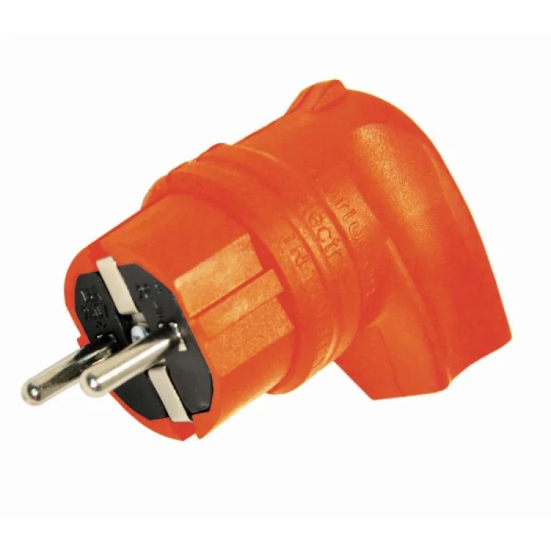 Вилка с заземлением, 16А, каучук, Г-образная, оранжевая, Mutlusan