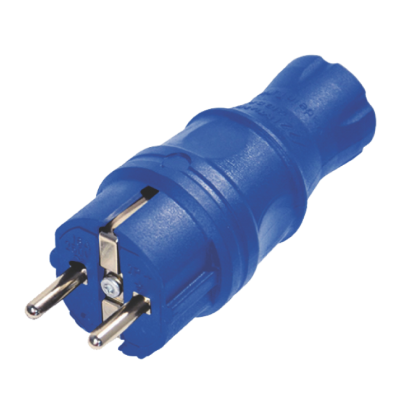 Вилка с заземлением, 16А, каучук, прямая, синяя, Mutlusan
