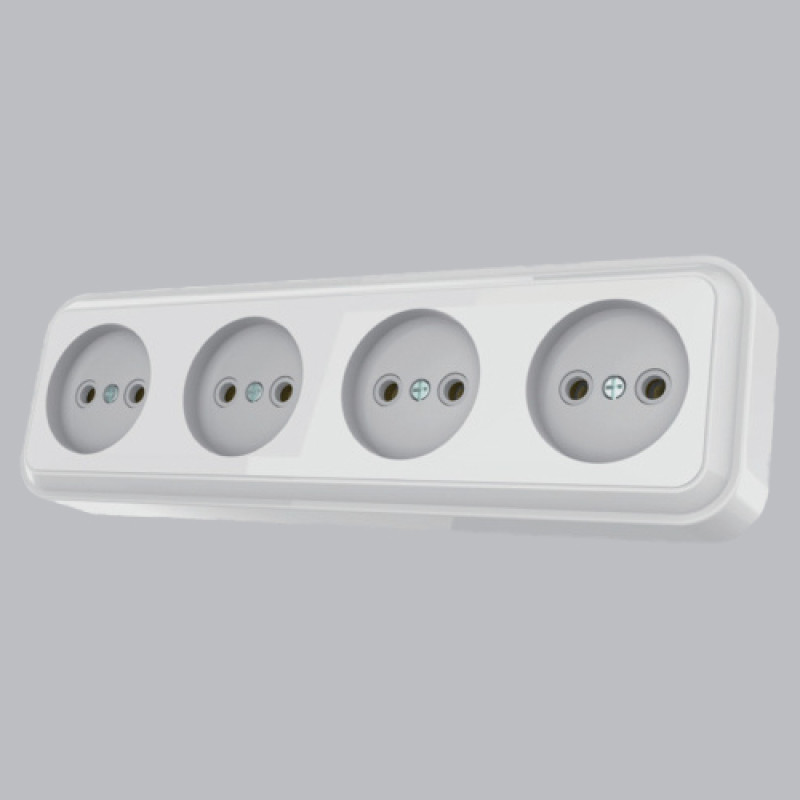 Розетка 4-я из ж/к накладная AWM TIMA белая IP20