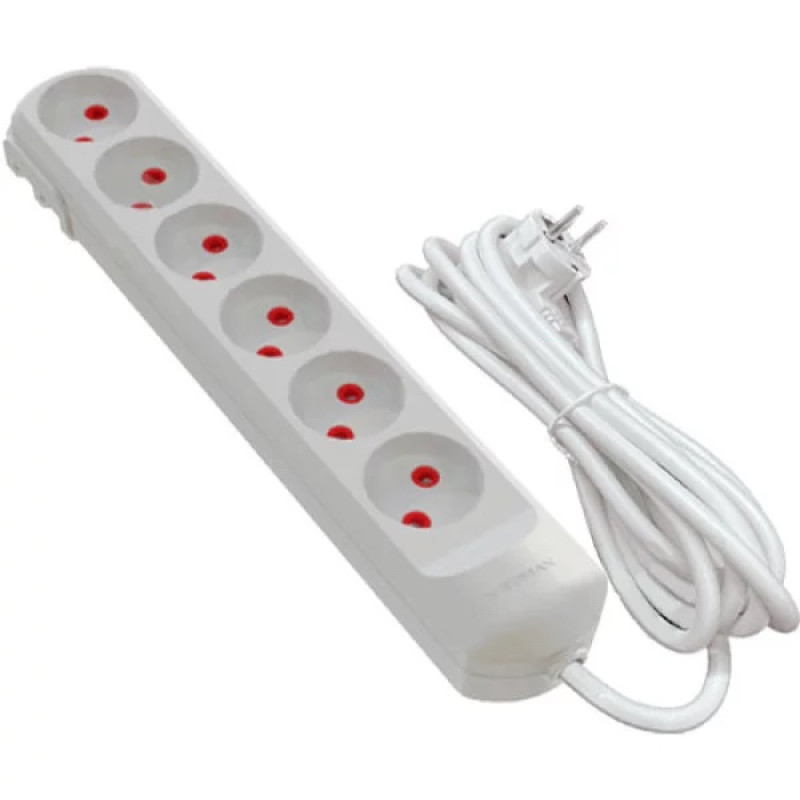 Удлинитель 6 гнезда без заземления 3 метра, что позволяет одновременно подключить два электрических устройства. Это особенно удобно, когда вам нужно подключить несколько устройств, а выходных розеток недостаточно.
