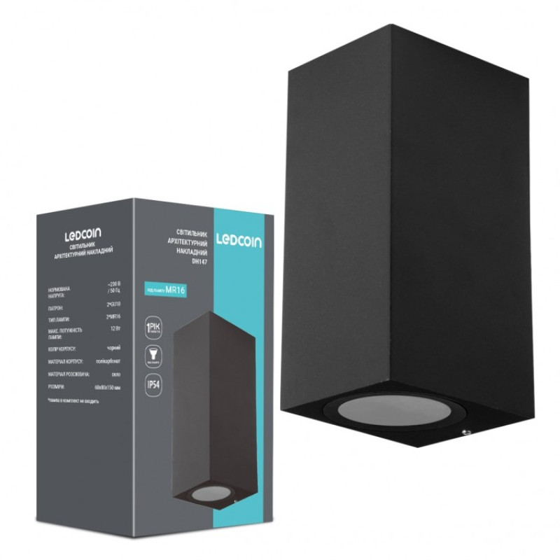 Архитектурный фасадный накладной светильник Ledcoin DH147 под лампу черный 80842