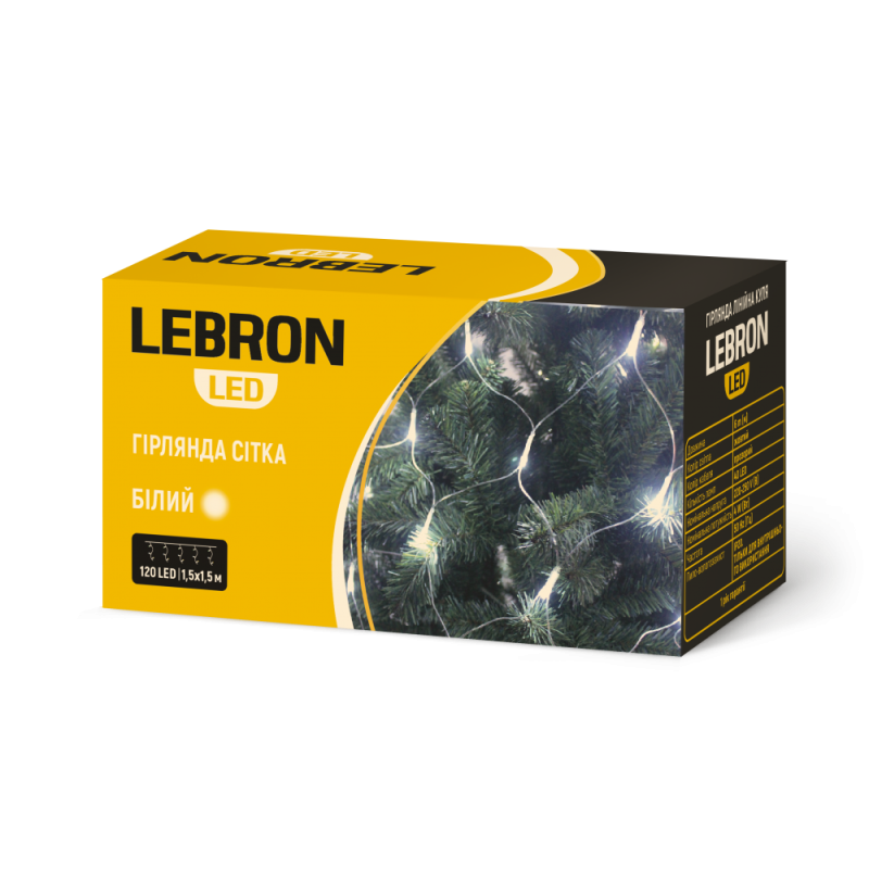 LED гирлянда LEBRON сетка 1,5х1,5, 120LED, желтая, IP20