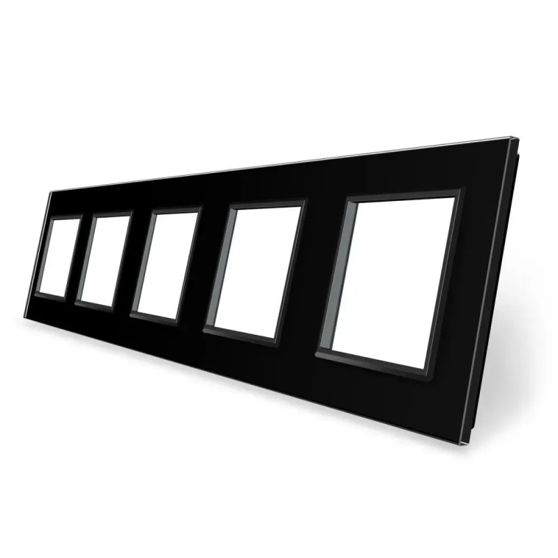 Рамка 5-постовая LIVOLO, закаленное стекло, черная, 365×80 мм (VL-P7E/E/E/E/E-10B)