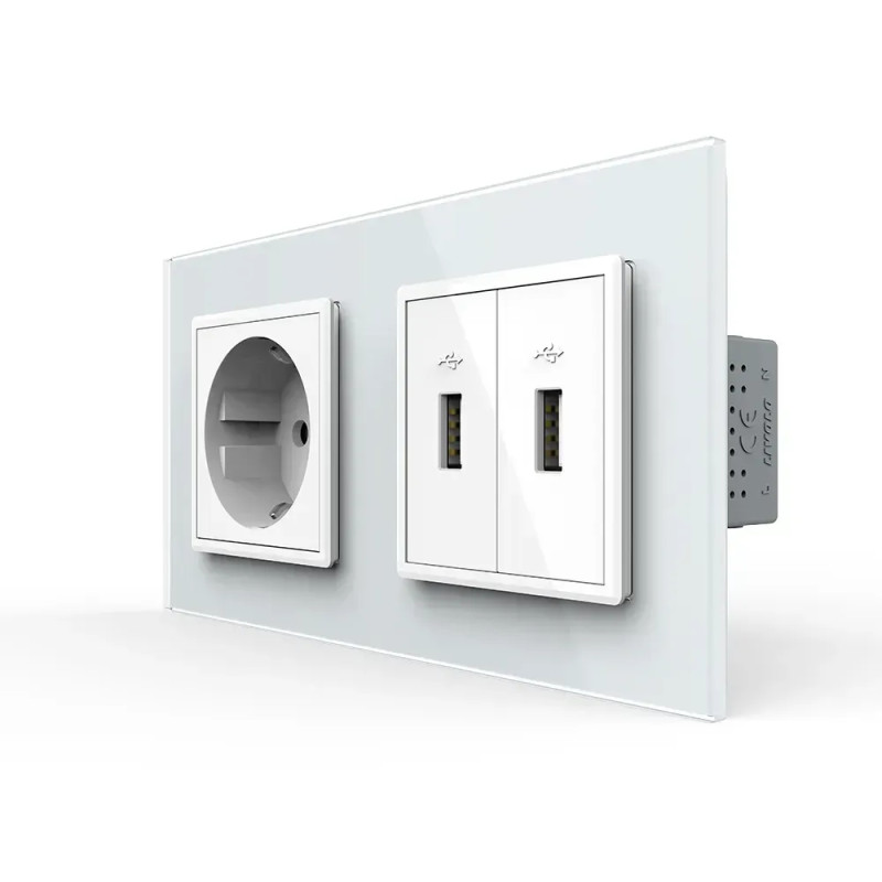 Розетка с заземлением с 2 USB розетками Livolo белое стекло (VL-C7C1EU2USB-11)