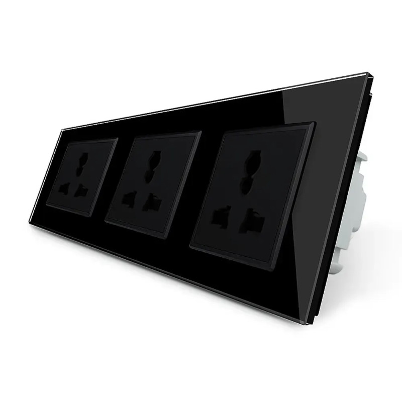 Розетка трехместная универсальная LIVOLO черное матовое стекло