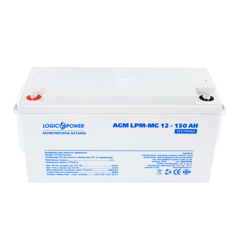 Мультигелевый аккумулятор AGM LPM-MG 12-150 AH LogicPower — предназначен для обеспечения автономного питания различных устройств и оборудования. Батарея используется при отсутствии доступа к электросети или для временного аварийного электроснабжения охранных сигнализаций, отопительного оборудования, генераторных установок, транспортных средств и другой техники, потребляющей напряжение 12В.