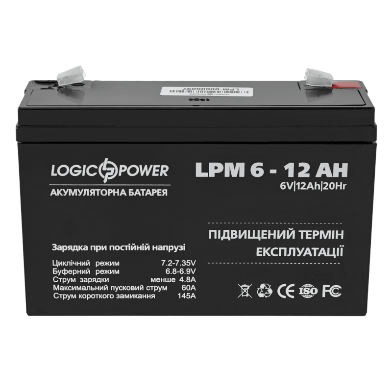 Аккумуляторная свинцово-кислотная батарея LogicPower AGM LPM 6-12 AH — это надежный и проверенный автономный источник питания для различных устройств и оборудования, потребляющих напряжение 6В.