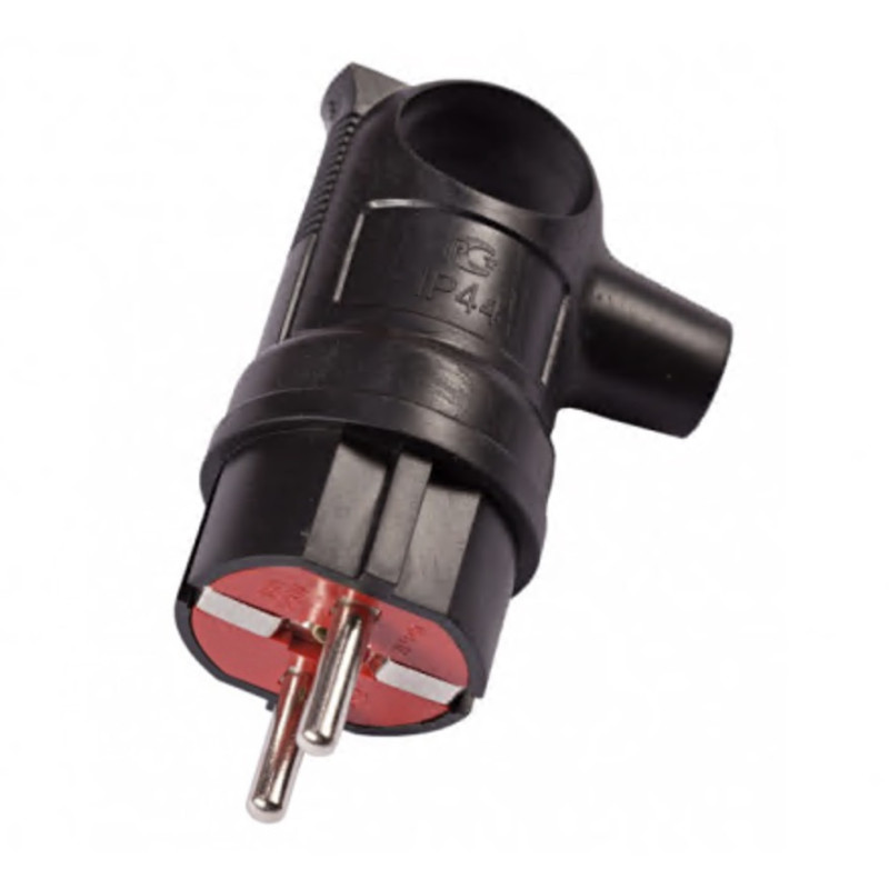 Вилка угловая LUXEL 1130 с заземлением и ушком черная