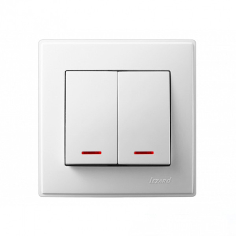 Выключатель двухклавишный с подсветкой LEZARD Lesya белый 705-0202-112