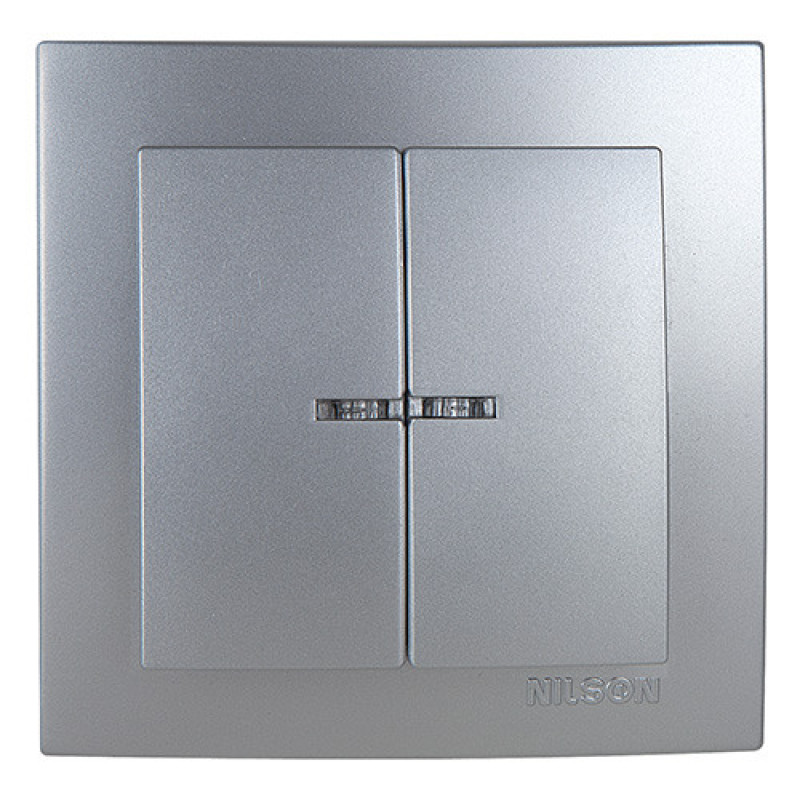 Выключатель двухклавишный с подсветкой NILSON Touran серебро 24131004