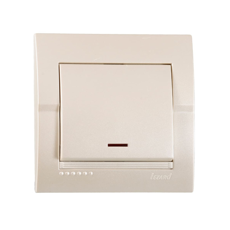 Выключатель одноклавишный с подсветкой LEZARD Deriy жемчужно-белый – стильный элемент электротехнического оборудования, созданный для современных помещений. Предназначенный для врезного монтажа в специальное отверстие в стене, он обеспечивает удобное управление освещением благодаря подсветке, что облегчает поиск в темноте.