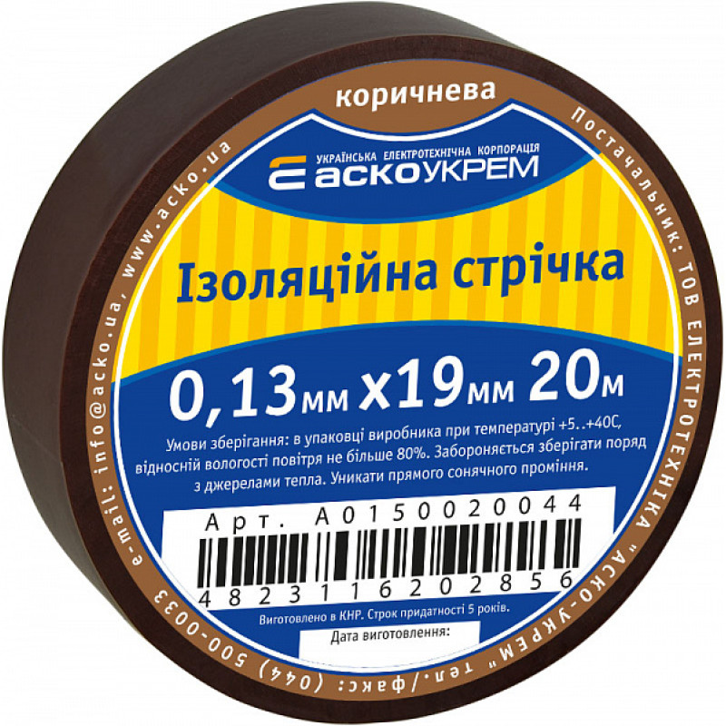 Изоляционная лента 0,13мм*19мм/20м коричневая АСКО-УКРЕМ A0150020044