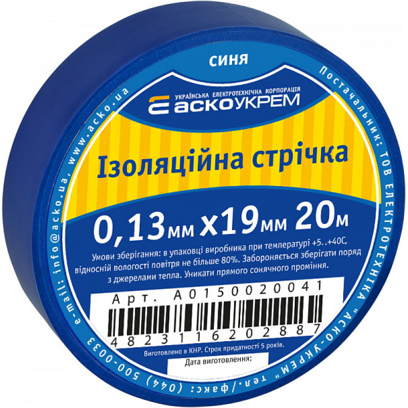 Изоляционная лента 0,13мм*19мм/20м синяя АСКО-УКРЕМ A0150020041