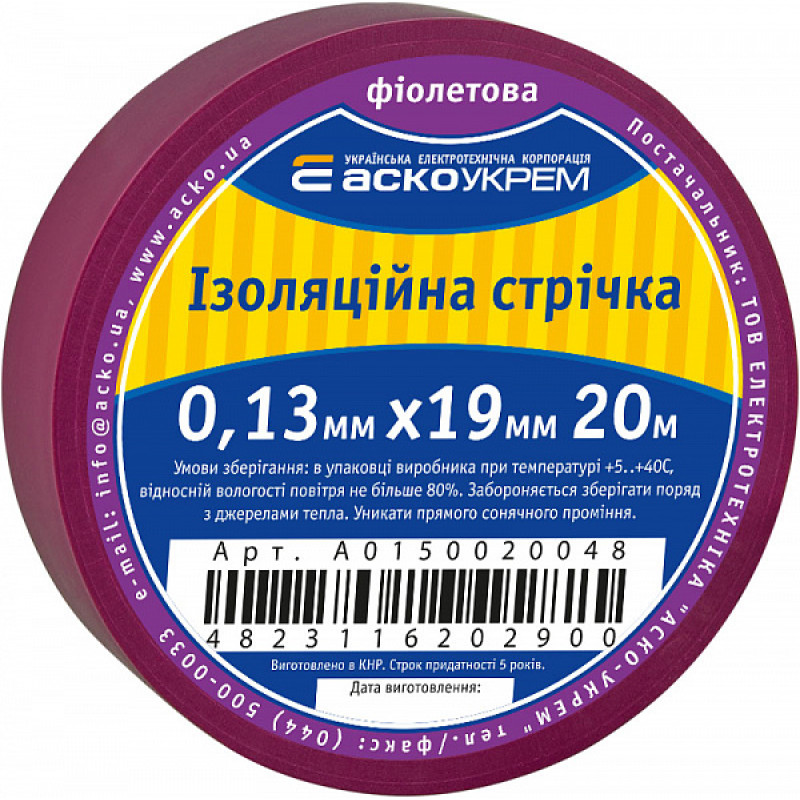 Изоляционная лента 0,13мм*19мм/20м фиолетовая АСКО-УКРЕМ A0150020048