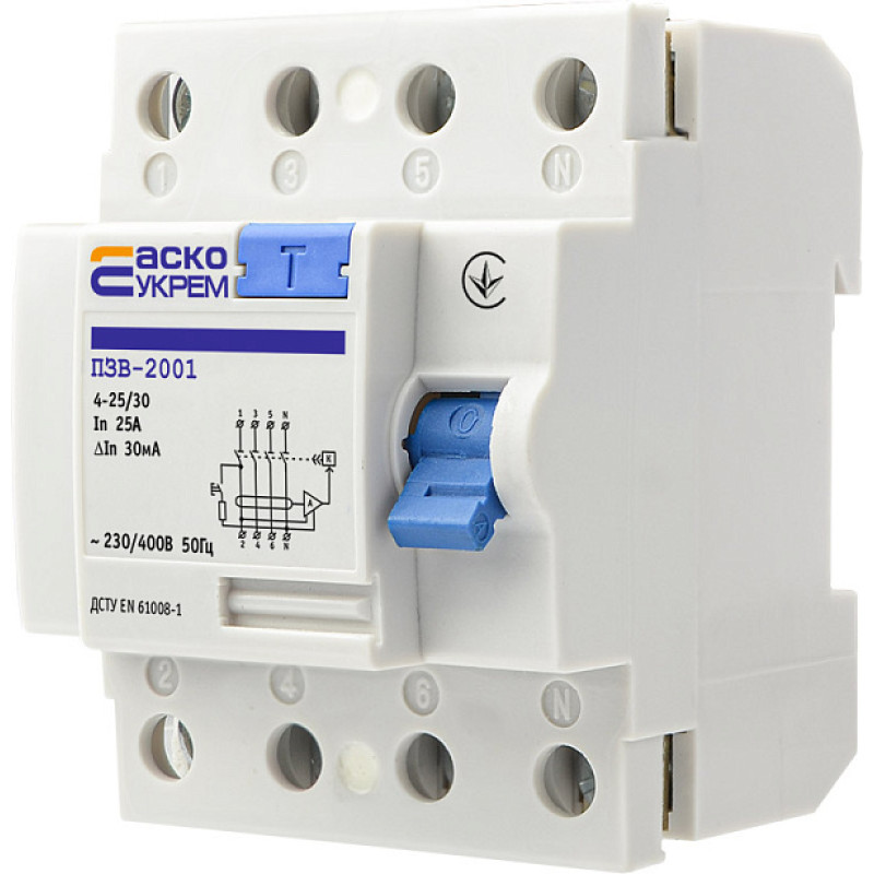 Устройство защитного отключения АСКО-УКРЕМ УЗО-2001 4р 25А 30mA - предназначено для защиты для защиты людей и животных от поражения электрическим током. Предупреждают возникновение пожаров, вызванных неисправностью электрической цепи.