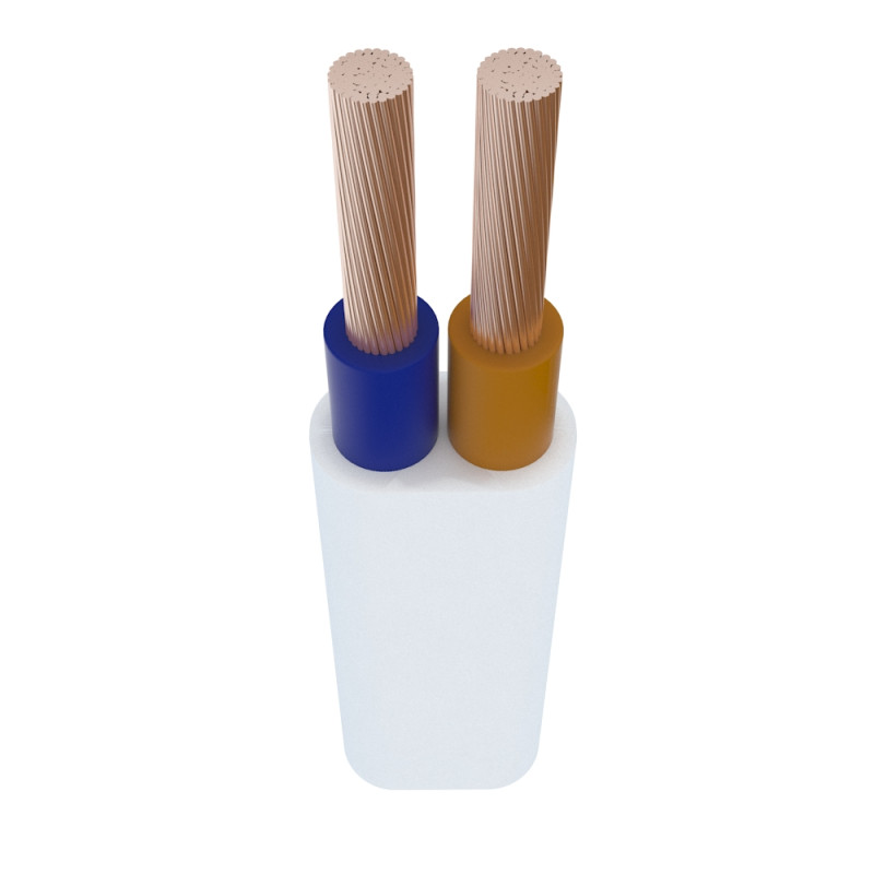 Токонесущие жилы сечением 2.5 мм2 изготовлены из медных проволок, скрученных в одну сторону. Каждая из двух жил выполнена в индивидуальной поливинилхлоридной изоляции, и для удобного использования кабеля во время монтажных работ, имеет маркировку по цвету.