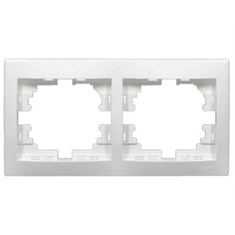 Рамка двойная горизонтальная LEZARD Mira белая выполняет двойную функцию: она служит декоративным элементом и позволяет безопасно установить в нишу несколько электрических приборов. Это идеальное решение для желающих сочетать стиль и функциональность в своем интерьере.