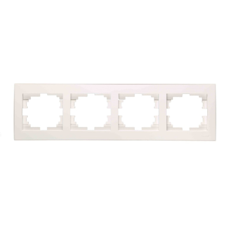Рамка четверная горизонтальная с боковой вставкой LEZARD Rain белая предназначена для использования с электрофурнитурой, особенно в случаях, когда требуется одновременная установка нескольких розеток или выключателей в одном месте. Этот элемент выполняет декоративную функцию, прикрывая врезное отверстие в стене, и также придает дополнительную надежность креплению монтажной конструкции.