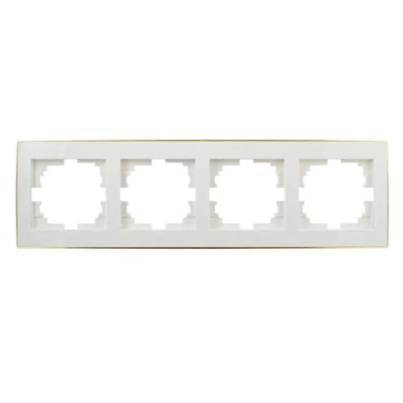 Рамка четверная горизонтальная с боковой вставкой золото LEZARD Rain белая
