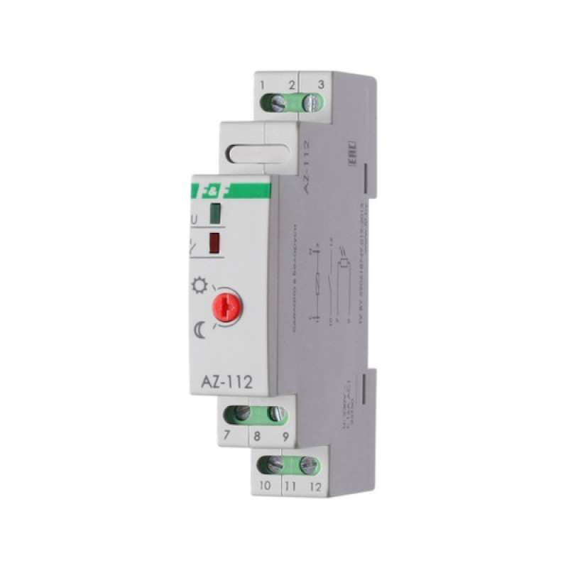 Реле сумеречное F&F AZ-112 16A с зондом предназначено для автоматического включения освещения на улицах и площадях, витрин магазинов, реклам и т.д., в сумерках и отключения такого освещения на рассвете.