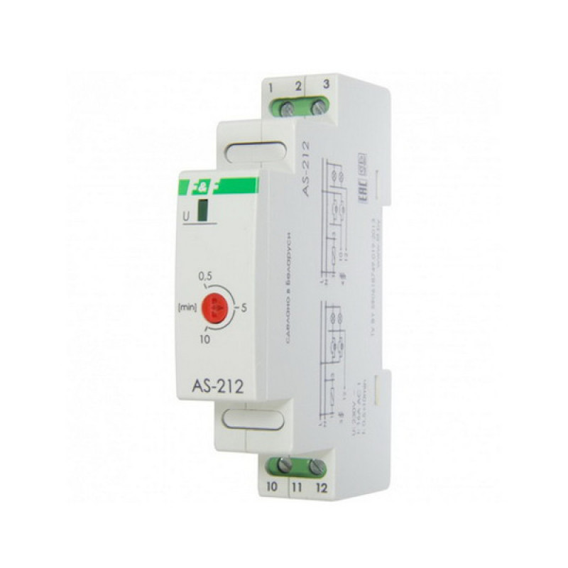 Реле лестничное AS-212 предназначено для поддержания включенным освещения лестничных клеток, коридоров и других объектов в течение определенного времени.Реле включается однопозиционным выключателем и поддерживает освещение в течение времени, установленного потенциометром (от 0,5 до 10 минут). По истечении времени установленного времени освещение будет автоматически выключено.