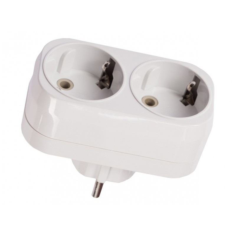 Разветвитель LUXEL 2 гнезда вертикальный с заземлением 1016 белый