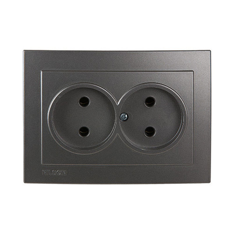 Розетка двухместная б/з NILSON Touran Антрацит - оснащена латунными контактами и сделана из термостойкого и самозатухающего пластика. Электрическая розетка имеет классический дизайн и подойдет для любого интерьера. Розетка выполнена из специального экологически чистого материала, обладающего дополнительной защитой к ультрафиолетовому излучению. Розетки и выключатели Nilson Touran предназначены для эксплуатации в местах с нормальным уровнем влажности (степень защиты от пыли и влаги - IP20).