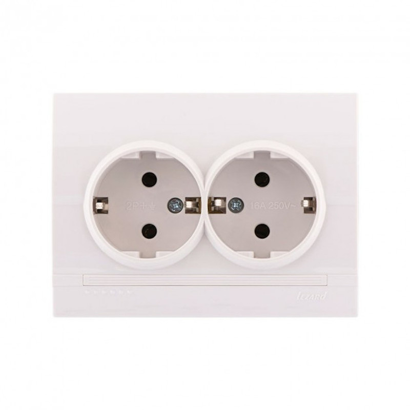Розетка двухместная с/из LEZARD Deriy белая - предназначена для подключения электрических приборов к сети. Серия DERIY – олицетворяет другой дизайн, другой стиль, который подойдет к любому интерьеру. Выполненная в белом цвете - всегда актуальное решение.