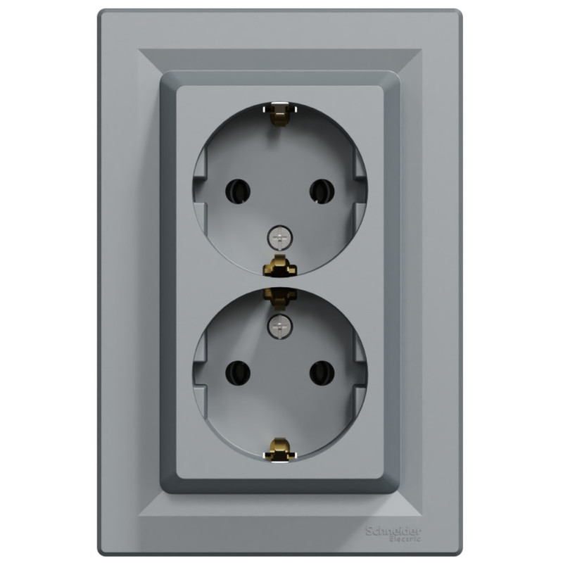 Розетка двойная с/з SCHNEIDER Asfora сталь EPH9900162