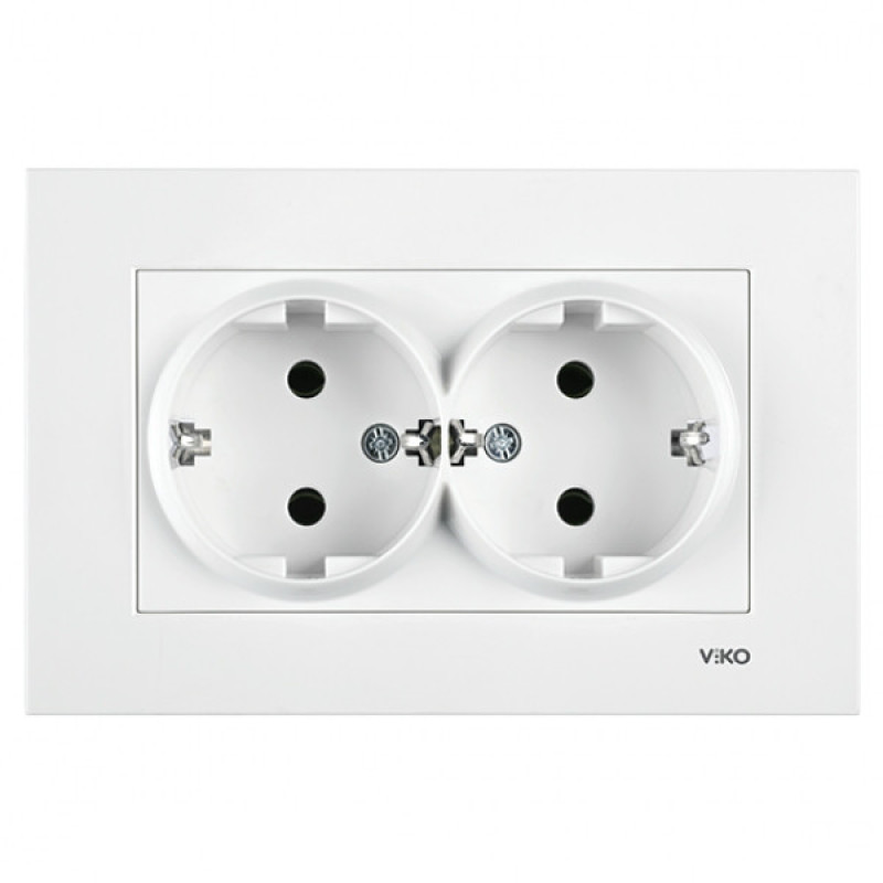 Розетка двухместная с/из VIKO Karre белая - у дизайна розетки с заземлением серии karre вы обнаружите строгие геометрические линии, свойственные всем изделиям этой серии бренда. Влияние минималистических трендов современного интерьерного дизайна сейчас ощущается повсюду, не обошлось это веяние и электроустановочные изделия компании viko.