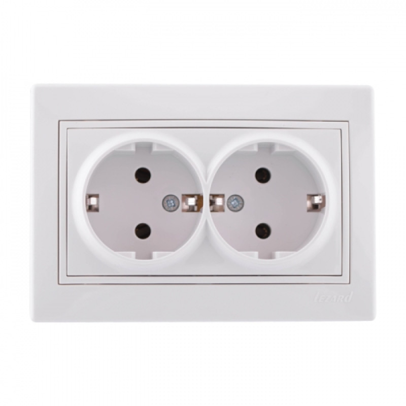 Розетка двойная с/з LEZARD Mira белая 701-0202-127B