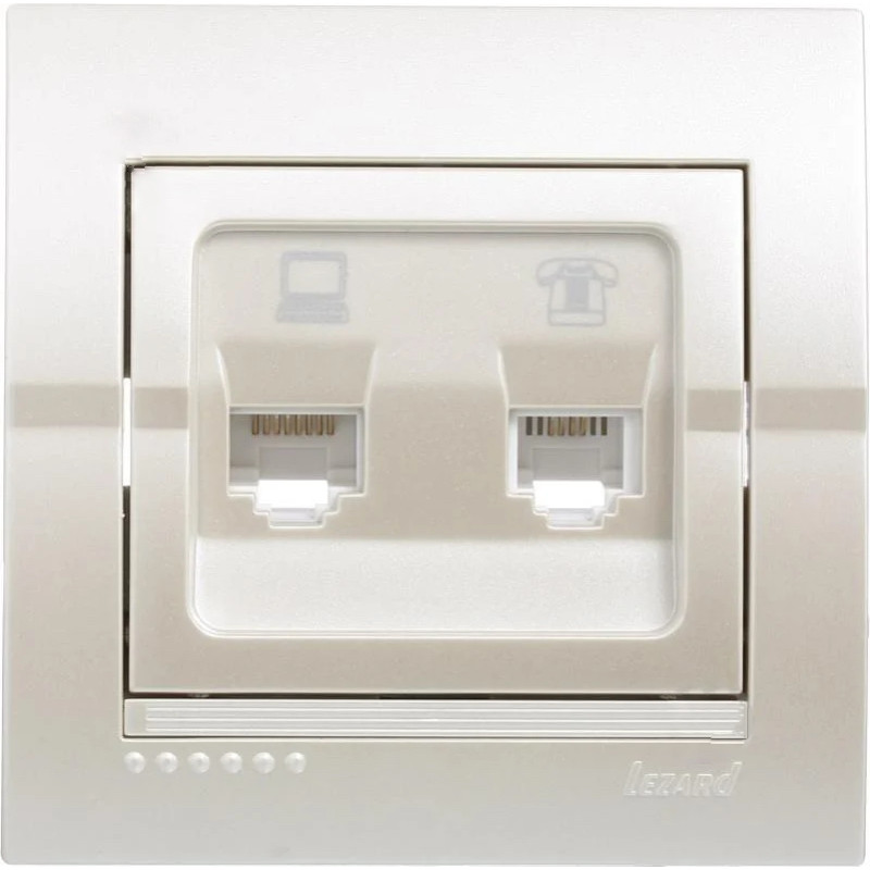 Розетка компьютерная и телефонная LEZARD Deriy жемчужно-белая 702-3030-143