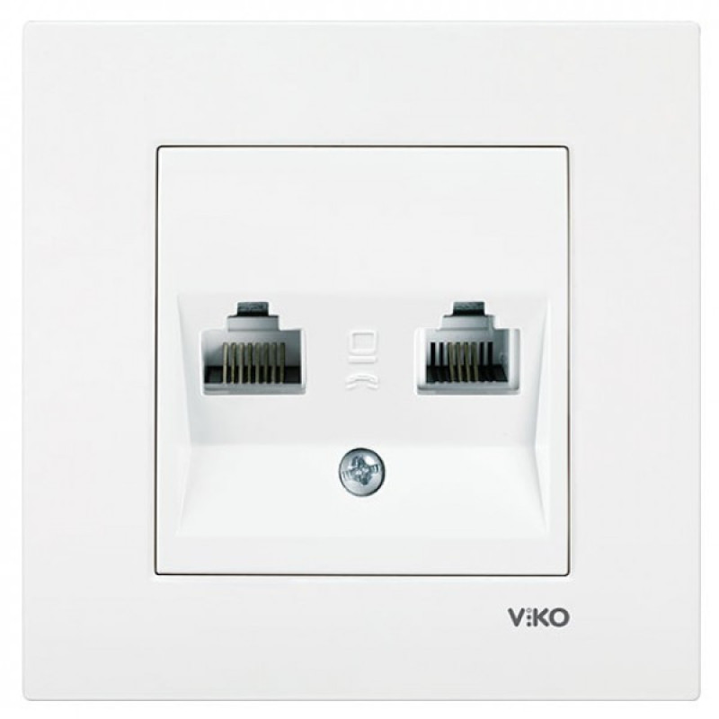 Розетка компьютерная и телефонная VIKO Karre белая - имеет гнезда RJ 45 и RJ11, с помощью которых можно подключить к локальной сети компьютер и телефон. Дизайн серии отличается округлыми сглаженными линиями и правильными формами. Она отлично сочетается с любыми интерьерными решениями.