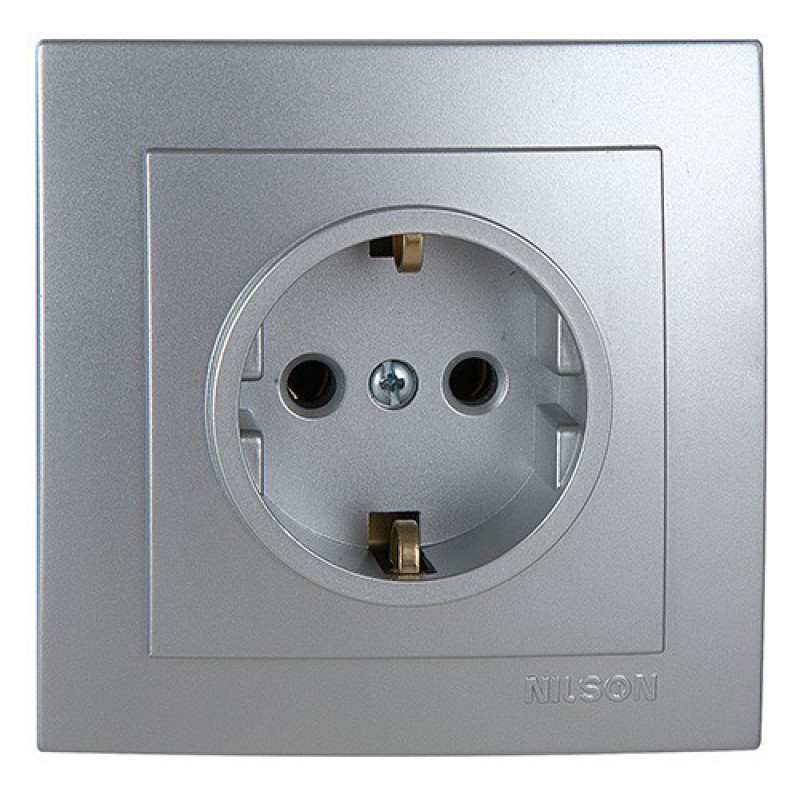 Розетка одинарная с/з NILSON Touran Серебро 24131017