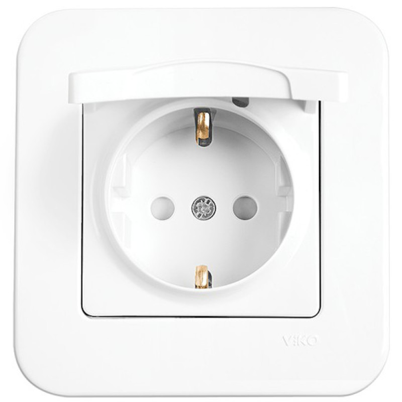 Розетка одинарная с/з с защитной крышкой VIKO Rollina белая 90420012