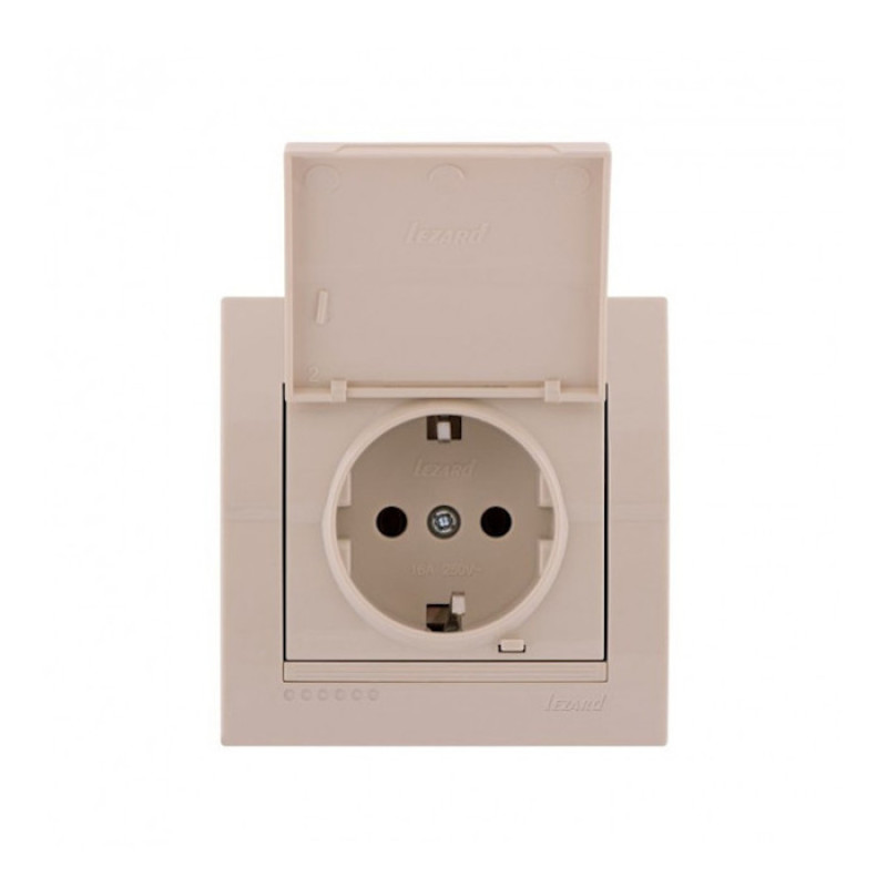 Розетка одинарная с/з и крышкой LEZARD Deriy крем 702-0303-123В