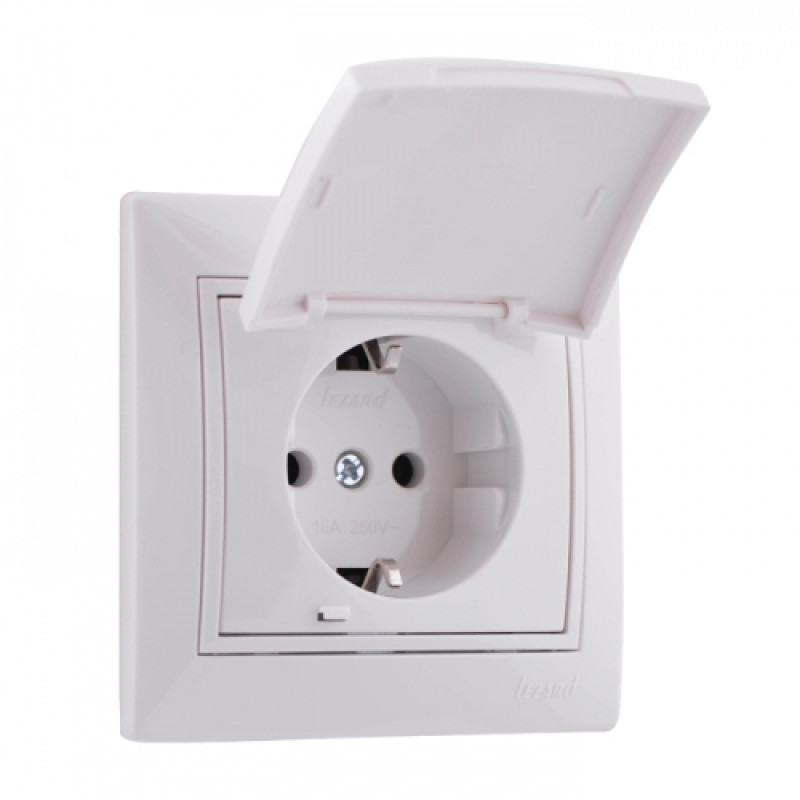 Розетка одинарная с/з с крышкой LEZARD Mira белая 701-0202-123B
