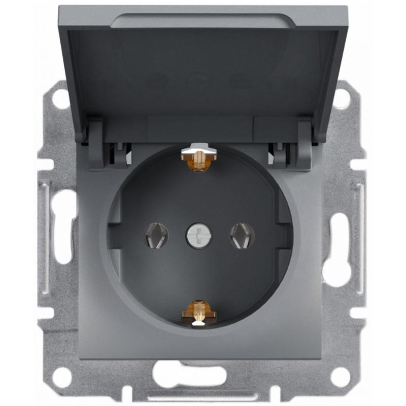 Розетка одинарная с/з и крышкой SCHNEIDER Asfora сталь EPH3100162